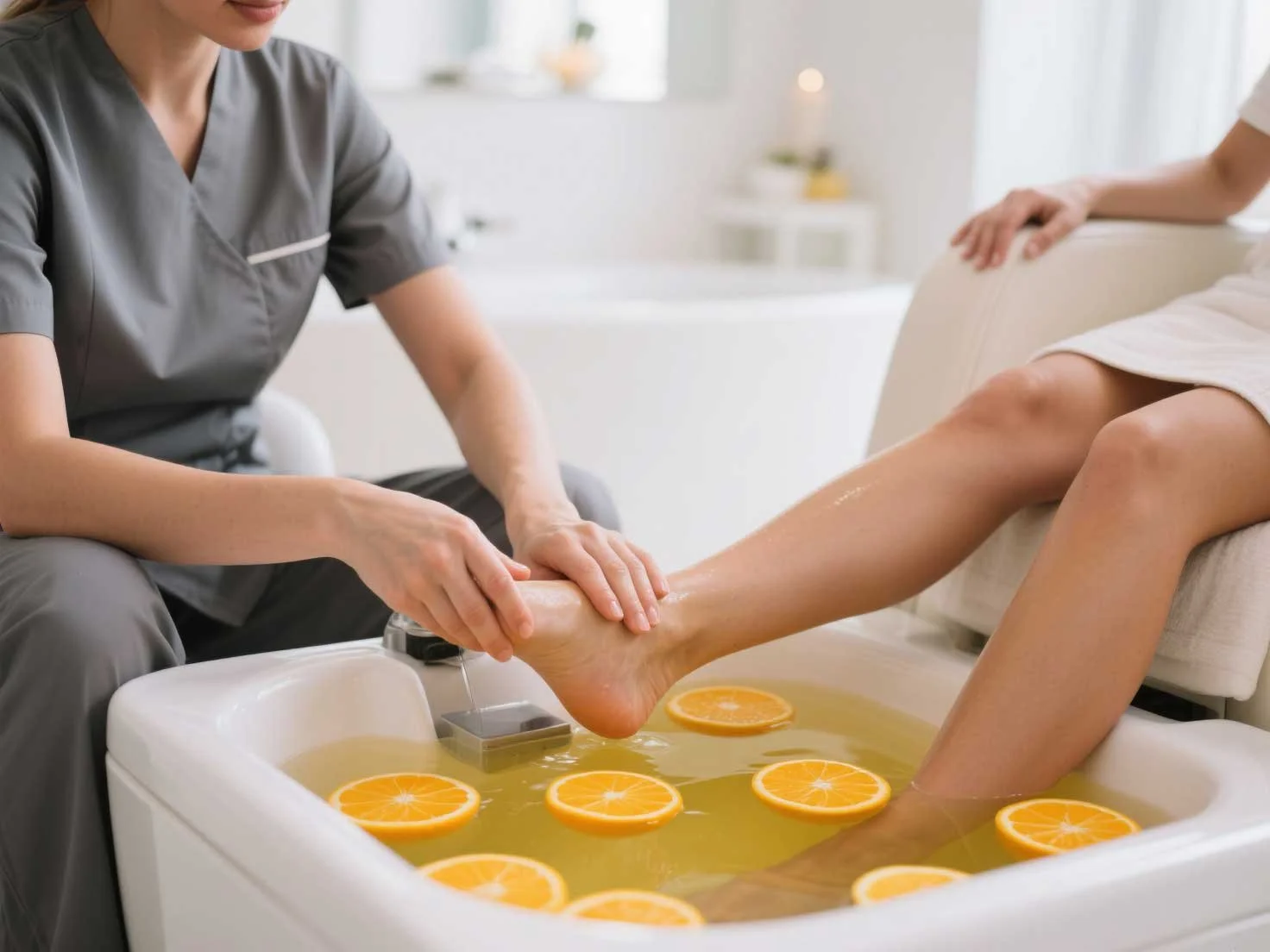 Revitalize your feet with the refreshing benefits of Vitamin C. The Citrus Glow Revival Pedicure includes several delightful steps. First, enjoy a bubbly soak that invigorates your senses. Next, experience a citrus scrub that exfoliates and rejuvenates your skin. After that, indulge in a hydrating mask that nourishes your feet. Finally, relax with a soothing massage that melts away tension. This treatment will leave your skin smooth, radiant, and full of energy.
