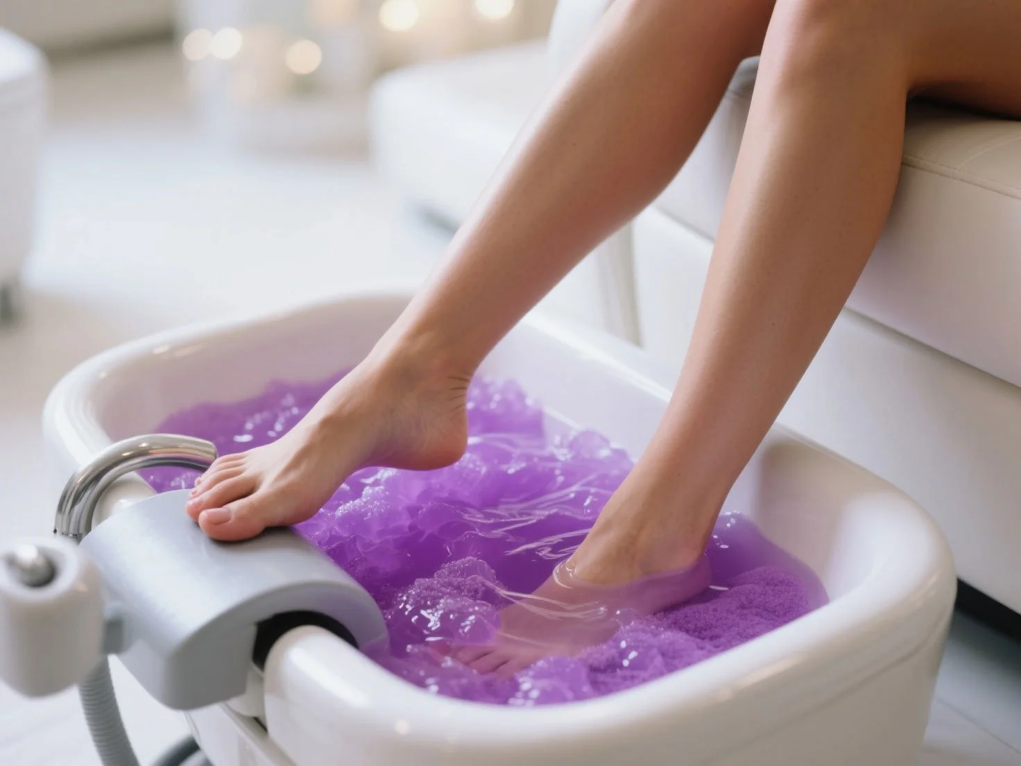 Jelly Pedi Soak: A special powder mixed with warm water creates a thick, soothing jelly. This jelly wraps around the feet, keeping them warm and relieving muscle tension.