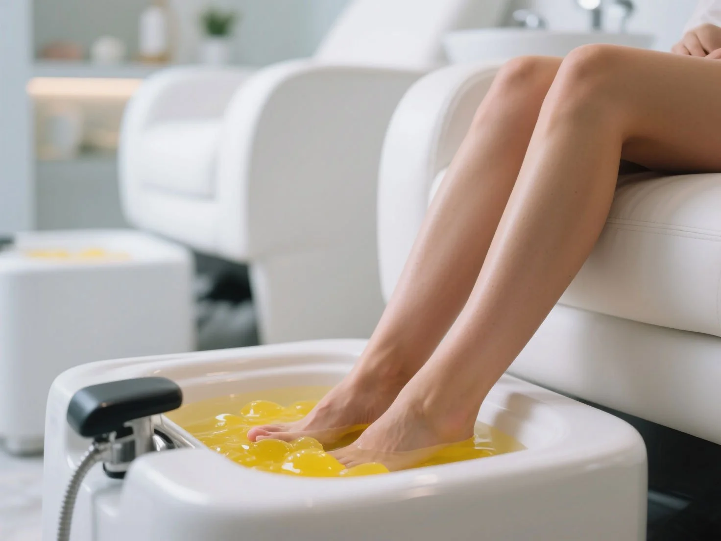 Jelly Pedi Soak: A special powder mixed with warm water creates a thick, soothing jelly. This jelly wraps around the feet, keeping them warm and relieving muscle tension.